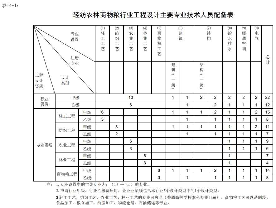 輕紡農(nóng)林商物糧行業(yè)工程設(shè)計(jì)資質(zhì)標(biāo)準(zhǔn)2022版